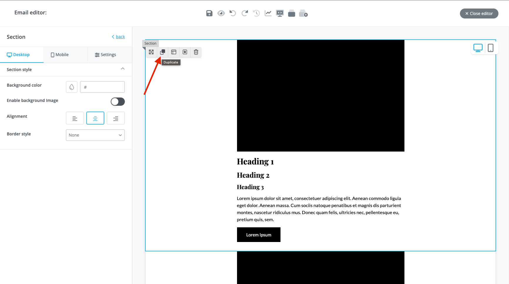 Now that your content elements are complete, let's start setting up the structure of the template. Duplicate the section with your placeholder content then add another column.